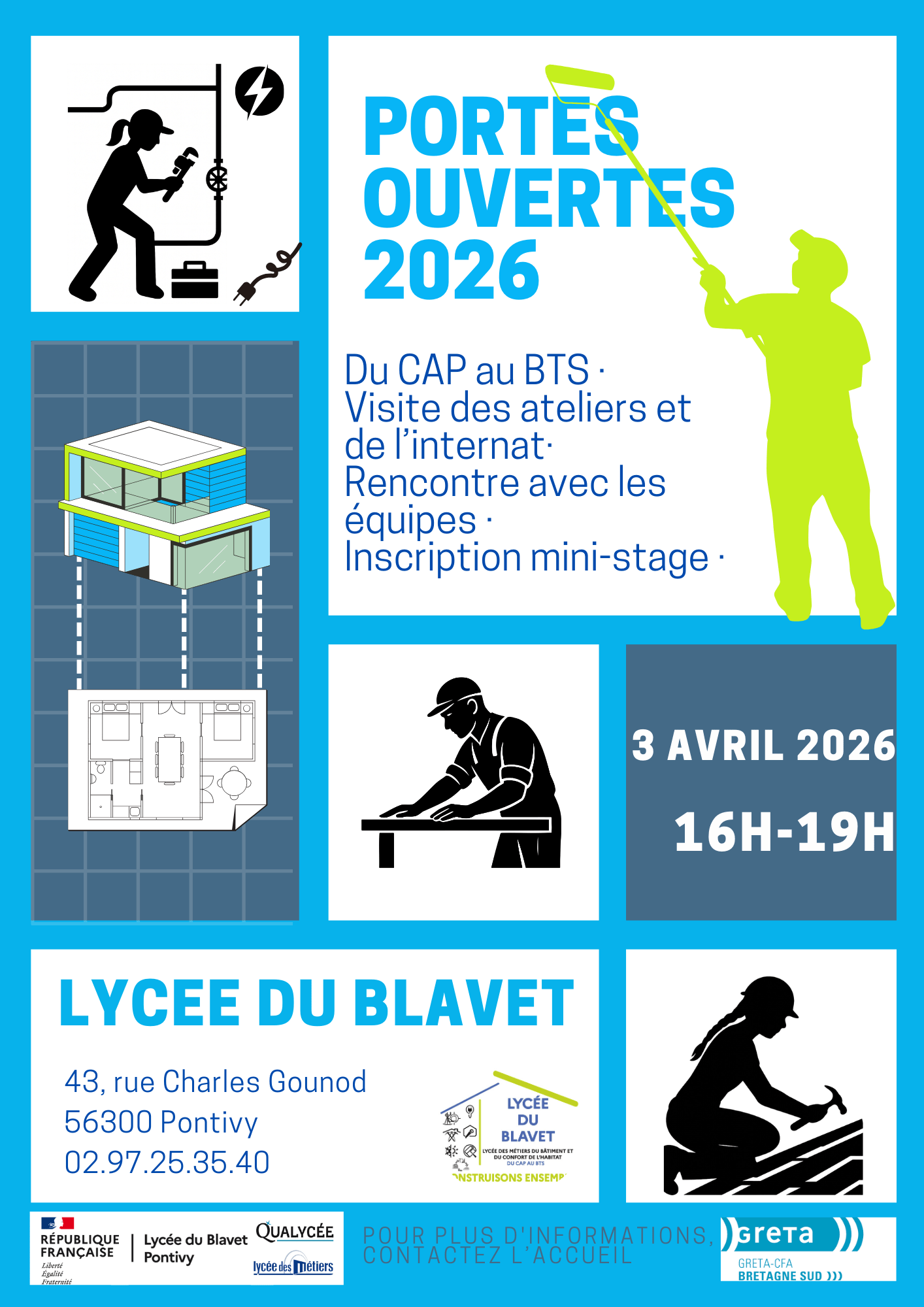 Le Lycée du Blavet (PONTIVY – Morbihan) vous forme aux métiers du bâtiment du CAP au BTS : Géomètre, Etude du bâtiment, Couverture, Charpente, Menuiserie, Energétique, Électricité, Peinture/Finition